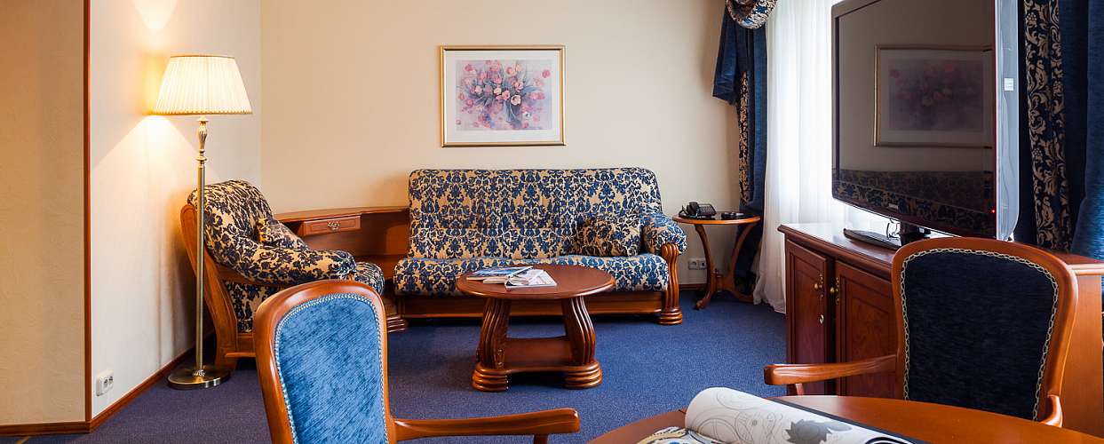Spacious suite with a living room and a bedroom. Interior decoration with high-quality natural materials creates a feeling of comfort and luxury. Ladies will especially enjoy a separate dressing room. The design and carefully designed facilities of the suite will allow you to fully enjoy your stay in a country hotel. Non-smoking suite.