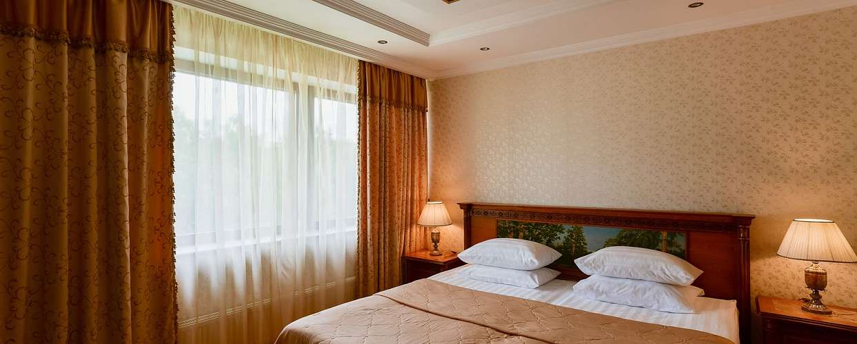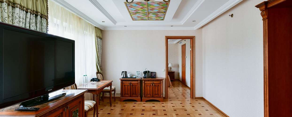 Designer rooms decorated in different styles: for business people or romantic couples. Their main distinctive quality is the amazing feeling created by the exclusive decoration and equipment of the VIP De Luxe Suite. You will fully enjoy the atmosphere of comfort and luxury, appreciate the hospitality and warmest welcome of the hotel staff. Non-smoking suite.