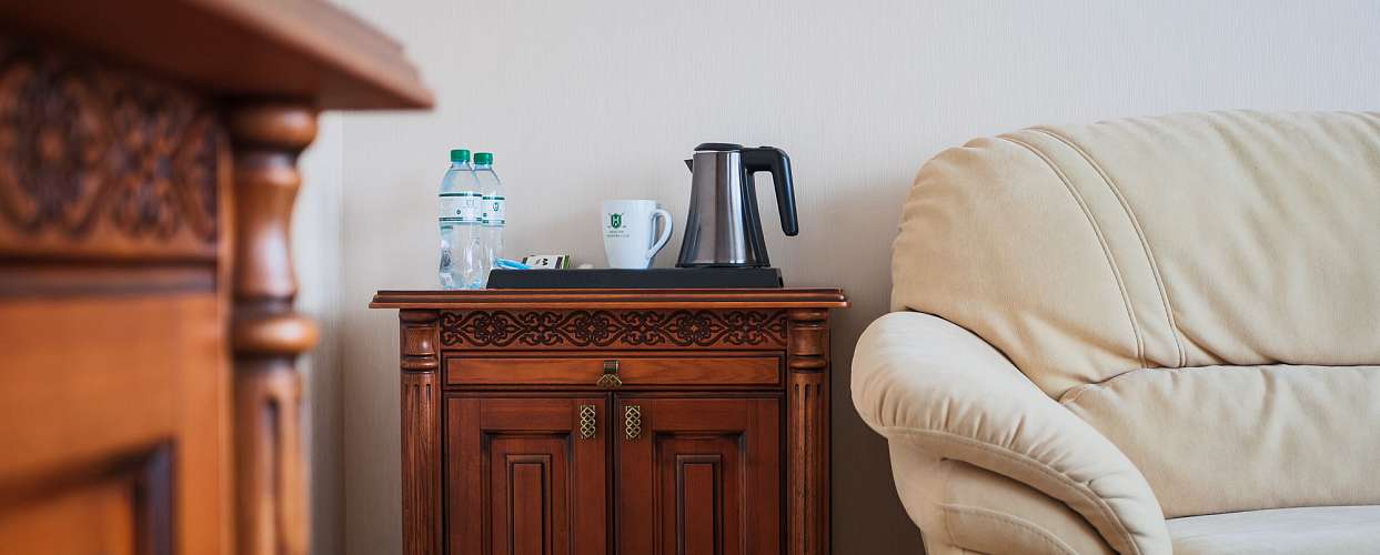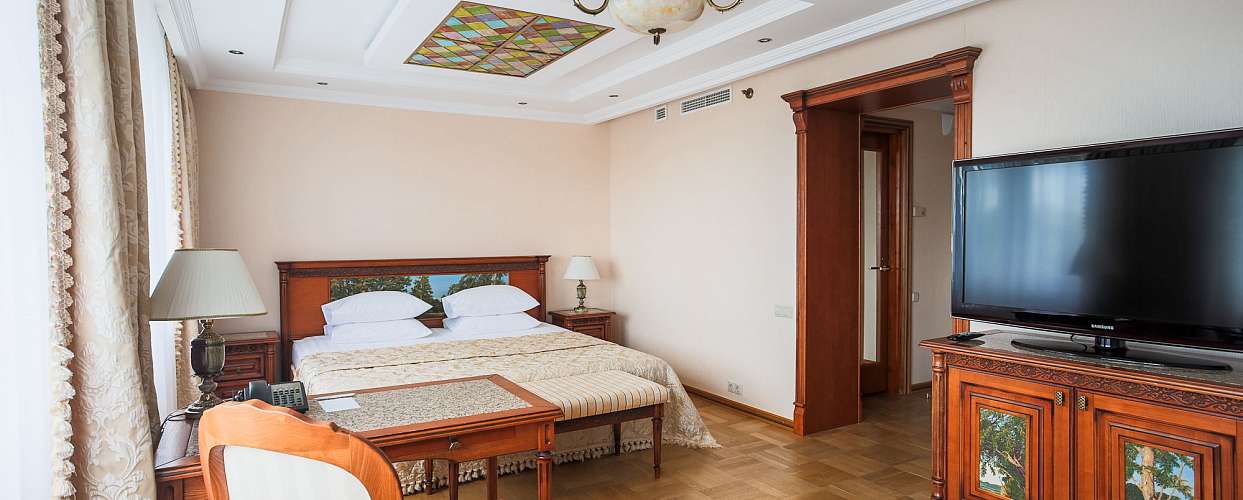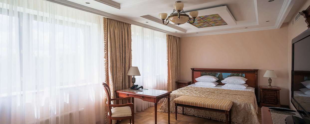 Улучшенные Студии расположены на 4 этаже отеля, из окон открываются прекрасные виды на территорию комплекса. В отделке номера использованы материалы повышенного качества. Мебель из натурального дерева с элементами гобелена и витражи на потолке создают комфортную и уютную атмосферу. Номер для некурящих.
