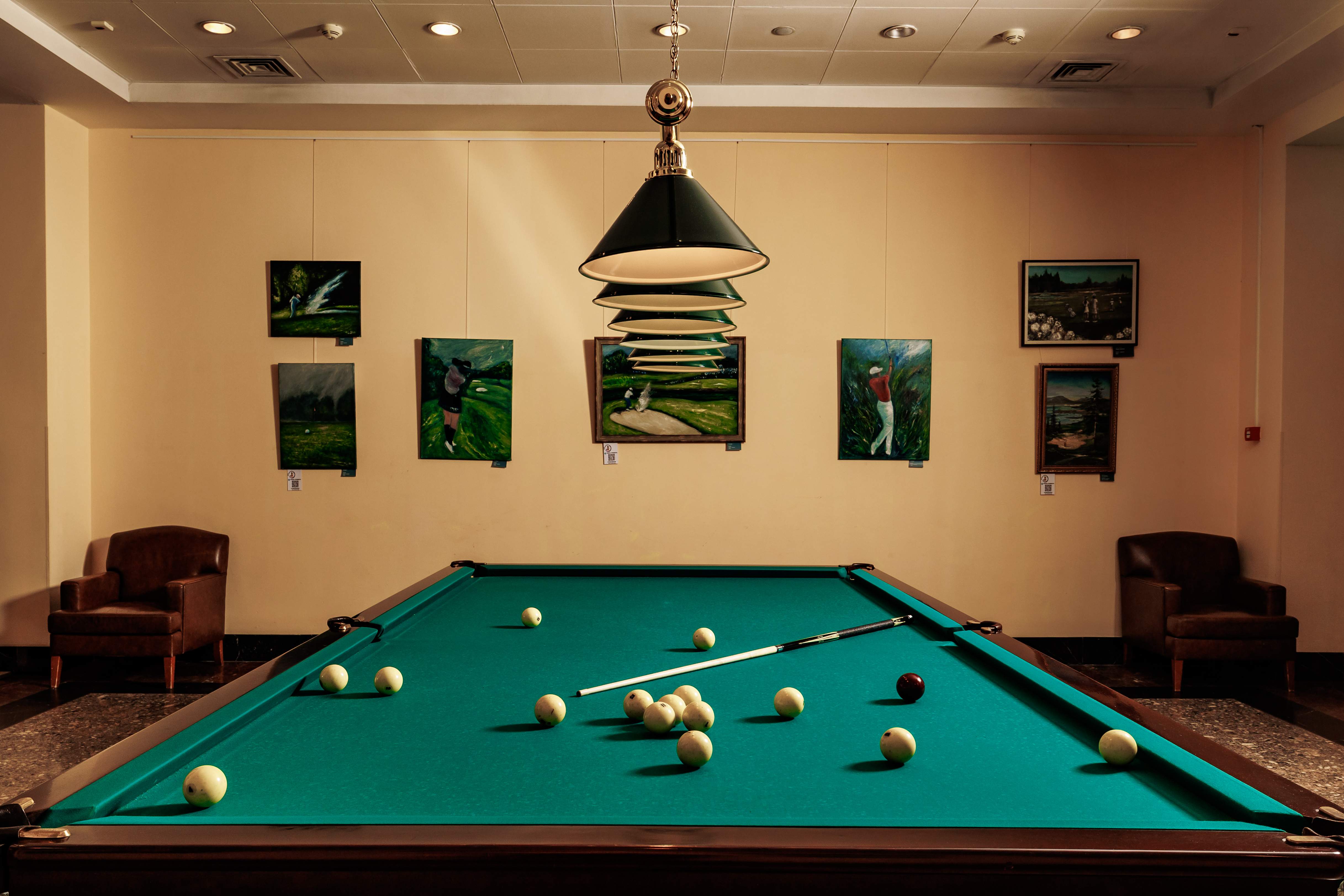 Оборудование соответствует стандартам: профессиональные столы, инвентарь в отличном состоянии. Зоны расположены в комфортной зоне отдыха — идеально для досуга в кругу семьи или друзей.