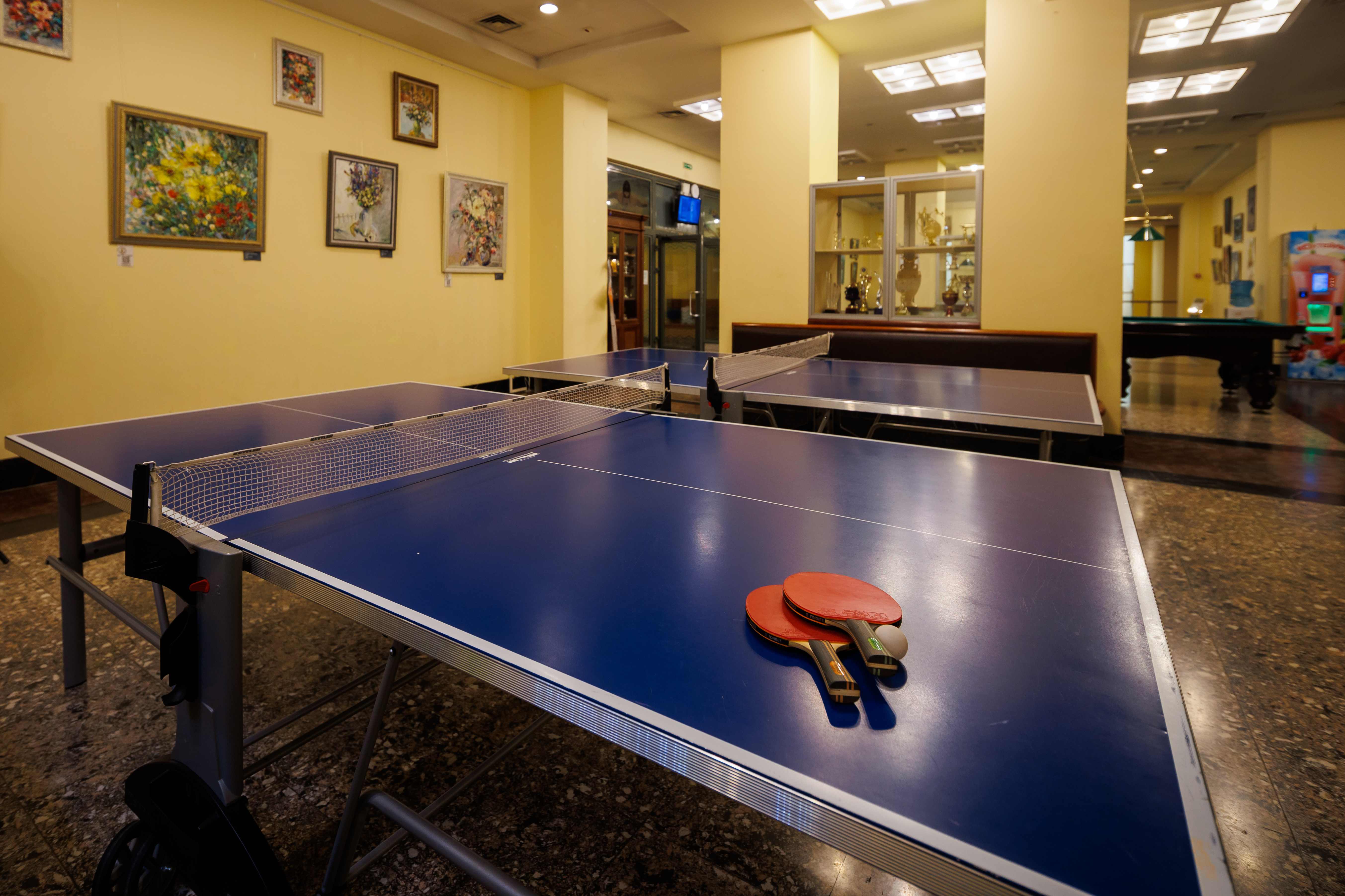 Спорткомплекс предлагает гостям зоны для игры в бильярд и настольный теннис.