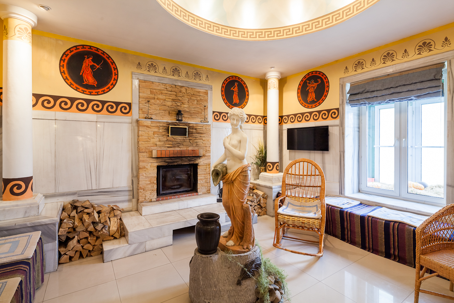 Здесь вы можете насладиться тишиной, выпить чашку свежезаваренного чая или просто расслабиться после банных процедур, сидя у камина.
