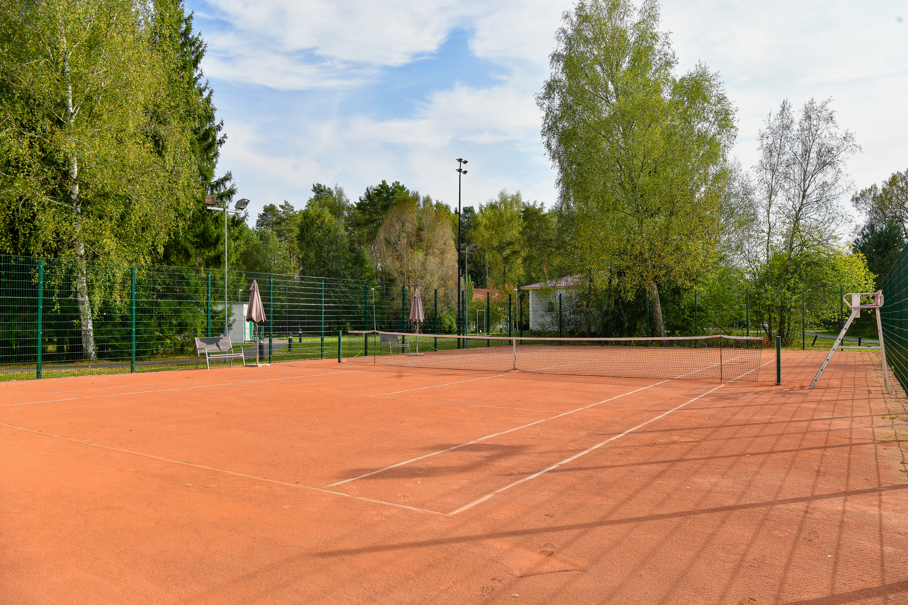 Предлагаем аренду теннисных кортов на живописной территории нашего комплекса отдыха, расположенного загородом в 13 км от МКАД на берегу реки Нахабинка. Здесь вас ждут несколько современных кортов различного типа. В зависимости от локации вы можете выбрать удобное для себя покрытие, занятия на свежем воздухе или в помещении.