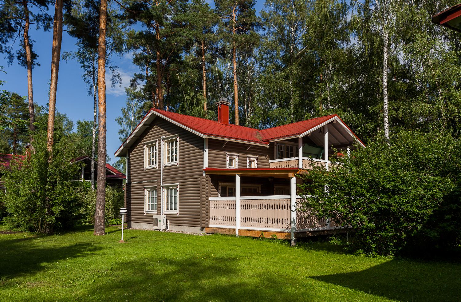 Дома выполнены из экологичных материалов, имеют сауну, камин, мангальную площадку и придомовую территорию. Расположены группами на большой живописной территории загородного гольф-курорта: на берегу реки, возле пляжа или в окружении леса. Выбирайте время для отдыха и получайте скидки на проживание в коттедже или таунхаусе.